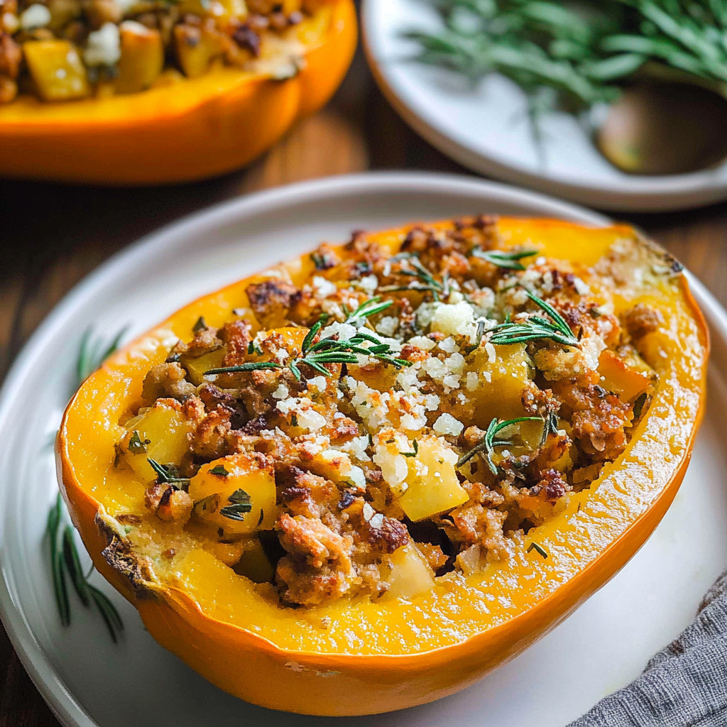 Honey Roasted Butternut Squash Stuffed with Chicken