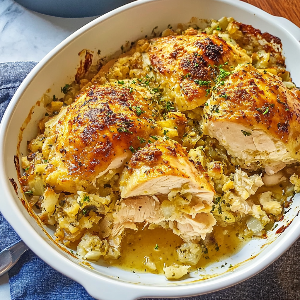 Indulge in the comforting delight of Chicken and Stuffing, a classic dish that combines tender, juicy chicken with savory, herb-infused stuffing. Perfect for family dinners or festive gatherings, this easy-to-follow recipe transforms everyday ingredients into a mouthwatering masterpiece. Enjoy the harmonious blend of flavors and textures that will have everyone coming back for seconds!