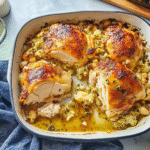 Indulge in the comforting flavors of Chicken and Stuffing, a classic dish that pairs juicy chicken breasts with a savory, herb-infused stuffing. Perfect for family gatherings or cozy weeknight dinners, this easy-to-make recipe guarantees a heartwarming meal that everyone will enjoy.